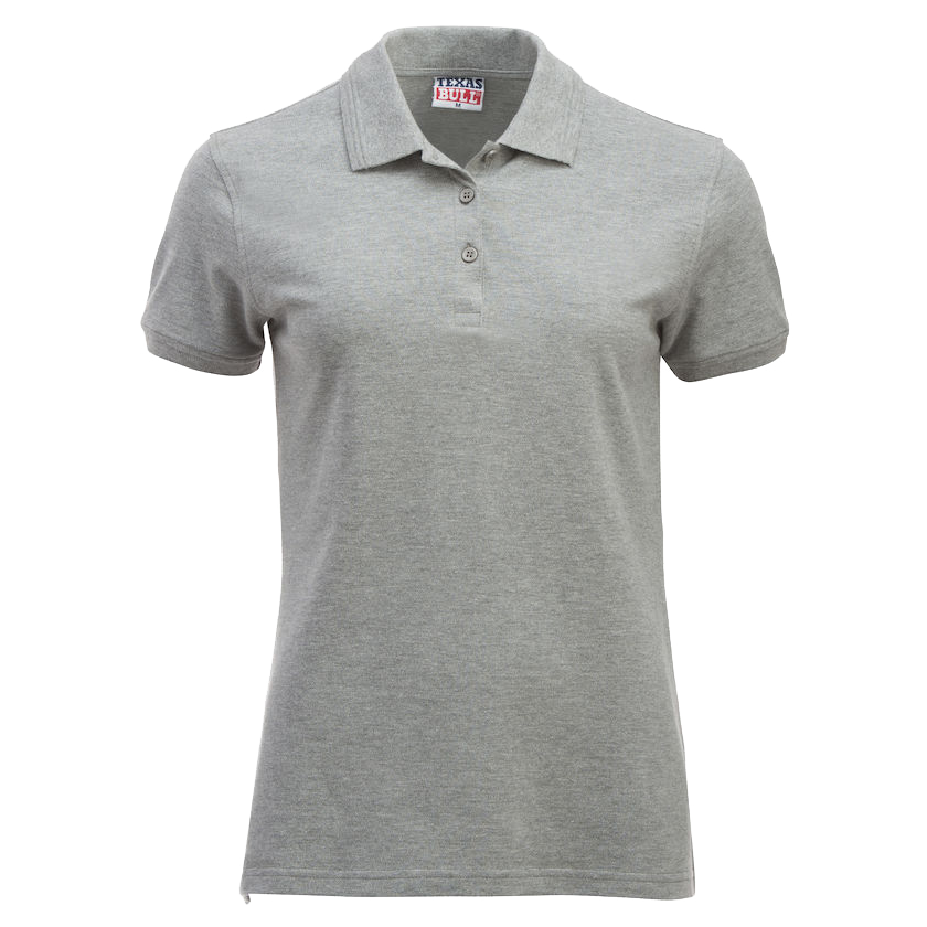 LADIES POLO WITH RIB AT BOTTOM SLEEVE 2 JACQUARD KNITTED STRIPES AT COLLAR, 3 TONE-IN-TONE BUTTONS AT PLACKET.